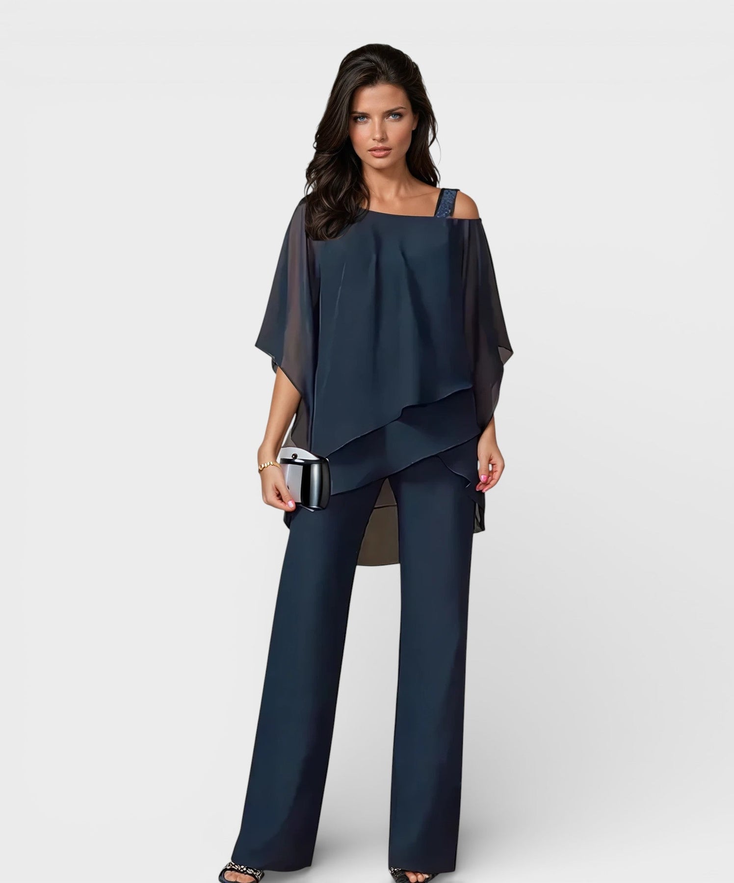 El set Noelia™ aporta un aire moderno y elegante a cualquier ocasión. Con un diseño de dos piezas de corte relajado, combina comodidad y sofisticación en una silueta que realza con suavidad tu figura. Perfecto tanto para eventos especiales como para disfrutar del día a día con estilo y confianza.