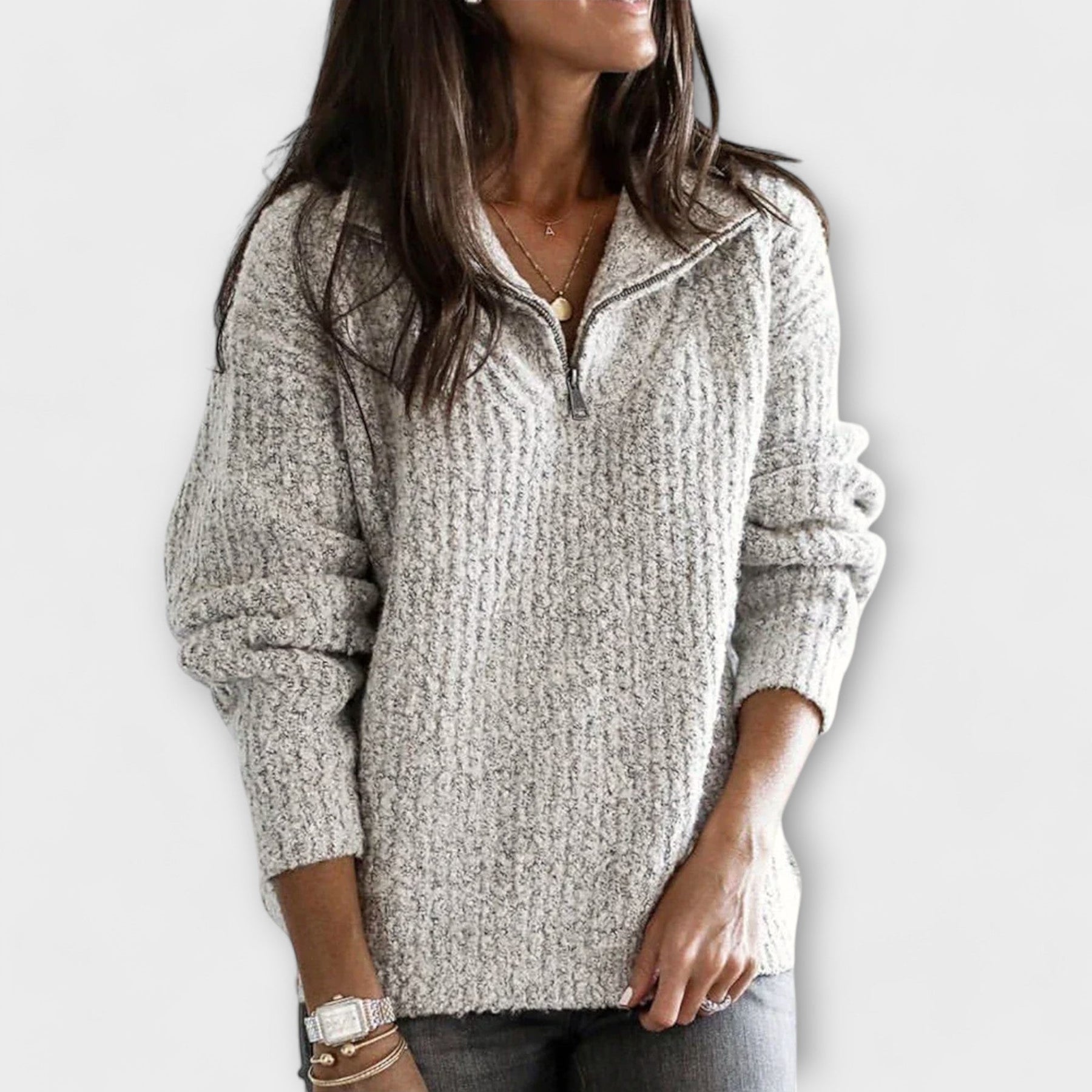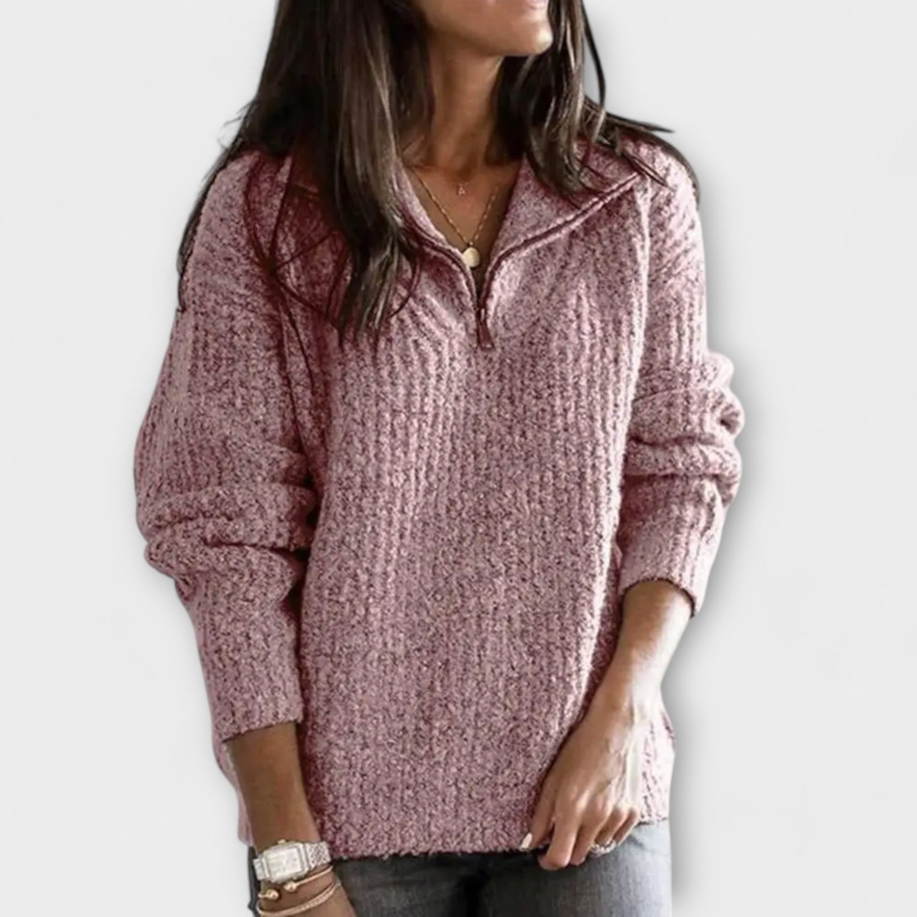 Mantente abrigada y cómoda en este suéter de invierno de corte relajado, con cierre de medio zipper, que le da un toque moderno y práctico. Las mangas largas y el material suave proporcionan calor y confort, haciéndolo perfecto para el uso diario o aventuras al aire libre en invierno.