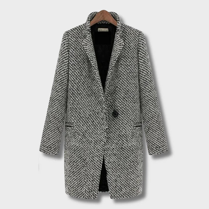 Este abrigo de tejido estructurado destaca por su patrón clásico y su silueta refinada, convirtiéndose en una pieza imprescindible para la temporada. Su interior acolchado aporta calidez sin añadir peso, mientras los botones frontales y el corte recto estilizan la figura con un aire moderno y sofisticado. Ideal para combinar con outfits casuales o más formales, es una prenda versátil que ofrece estilo y comodidad en igual medida.